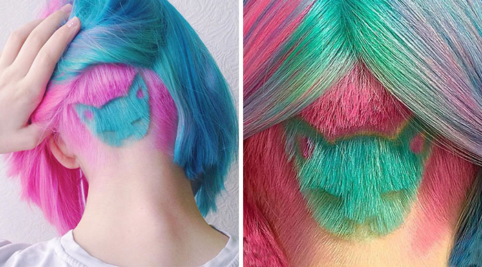 “I always take my sleepy cat with me,” reads the message she posted alongside the picture. The style follows a new trend called hair tattoos, where an image or pattern is shaved into an undercut beneath the hair at the back of the head. The picture remains hidden and is only revealed when you brush your hair aside.