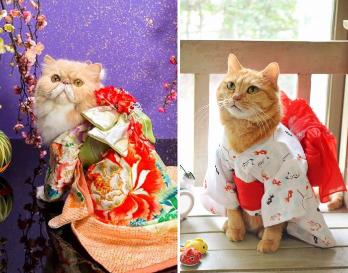 Kimonos are traditional Japanese robes that are now usually worn only on special occasions. These cat kimonos are becoming so popular that they can be purchased online from Amazon.