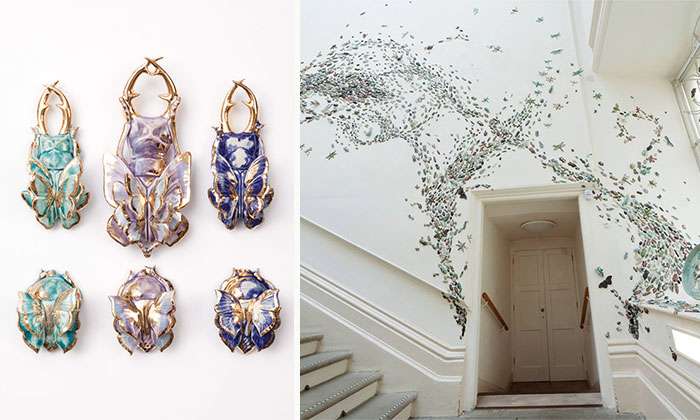 I’m a ceramic artist with an infestation problem. I have a swarm of 10,000 beetles, butterflies, dragonflies, and the odd, more curious specimen, to be exact. Luckily they are made of clay, and I created this swarm with a team of assistants in 2011 for my first solo art show at Nottingham Castle in 2012. The entire swarm of ceramic figurines took a year to make, and every single beetle was hand made and glazed.