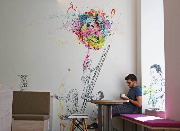 I got the commission to design a huge mural at COCOQUADRAT, an awesome co-working space in Vienna, Austria and I’m very glad about it.