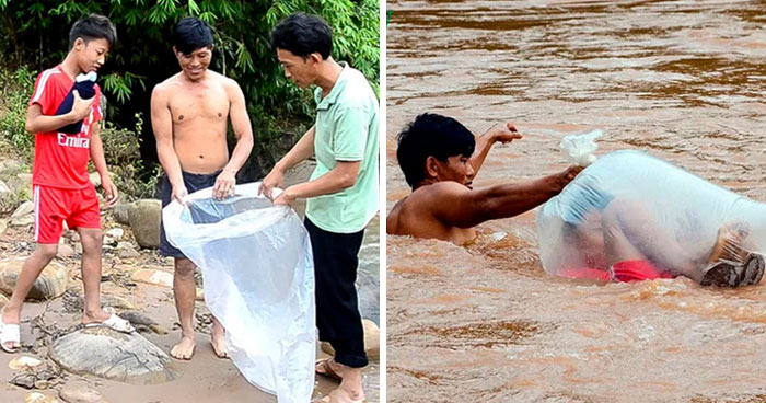 However, for these kids in Huoi Ha, a remote village in Dien Bien province, Vietnam, they know that education is vital if they are to lift themselves from poverty, and will go to great lengths to ensure that they can attend class. Even if it means climbing into a plastic bag to be dragged across a raging river!