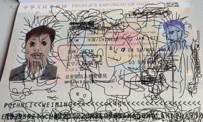 Here’s a parenting pro tip for everyone: never give your child your passport along with a sharpie pen, because this is what it will look like after your little Da Vinci gets to work. This particular passport belongs to a Chinese man who got stuck in an airport in South Korea because his passport was claimed unrecognizable by the border officials. It is indeed hard to recognize the man because the passport is completely covered in amusing doodles drawn by his son, a four-year-old with an artistic streak. The picture was originally posted on social networking site Weibo by the father, known only as Chen, alongside a plea for help, Shanghaiist reports. But looks like the plea did not help, as he is still enjoying his prolonged holiday in South Korea. (h/t)