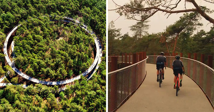 In order to promote sustainable tourism and encourage people to get out into nature, a Belgian tourism organization called Visit Limburg has been working on cool cycling trails for quite a while now. Their first project called “Cycling through Water” appeared back in 2016 and it’s a path allowing visitors to cycle more than 200 yards through a pond. Their second project “Cycling through the Trees”—the one that this article is about—appeared last year and recently has been gaining a lot of attention from nature and active leisure lovers all around the world.