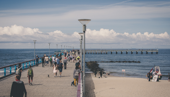 Palanga is a seaside resort town in western Lithuania, on the shore of the Baltic Sea. It is the busiest summer resort in Lithuania and has beaches of sand (18 km long and up to 300 m wide) and sand dunes.
