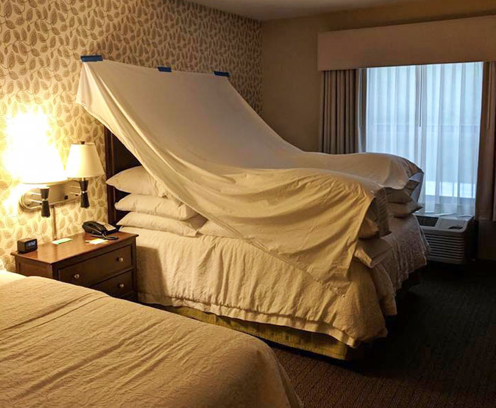 Some hotels go the extra mile to make their customers’ stay that much more pleasant. From bed forts and ‘spouse disposal units’ to hilarious menus and tiny takeaway bags for tiny soap, these are the creative ideas that make you want to visit again and again. Bored Panda created this awesome list of clever ideas and unique touches that some of the best hotels have introduced. These will bring a smile to your face, give you a hearty chuckle, and make you go ‘wow, how didn’t I think of that?’ So keep on scrolling, share the best hotel designs and ideas with your friends, and upvote the best pictures! My personal favorite is the bed fort (I know what I’m building at home tonight) — what about yours? Be sure to scroll down and read our interview with Dr. Gabor Forgacs from Ryerson University about the hotel industry and hoteliers.
