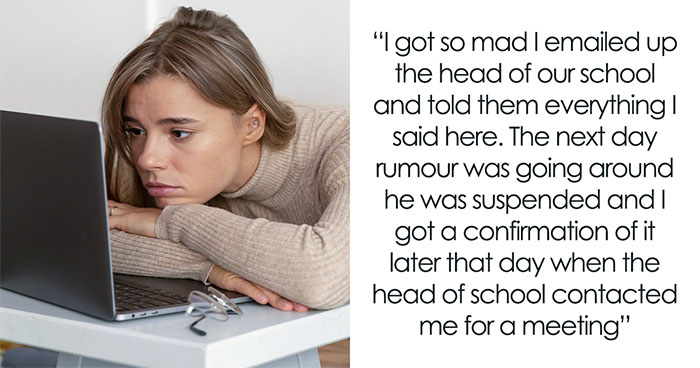 The author reported him to the head of the school, and the rude teacher got suspended soon after