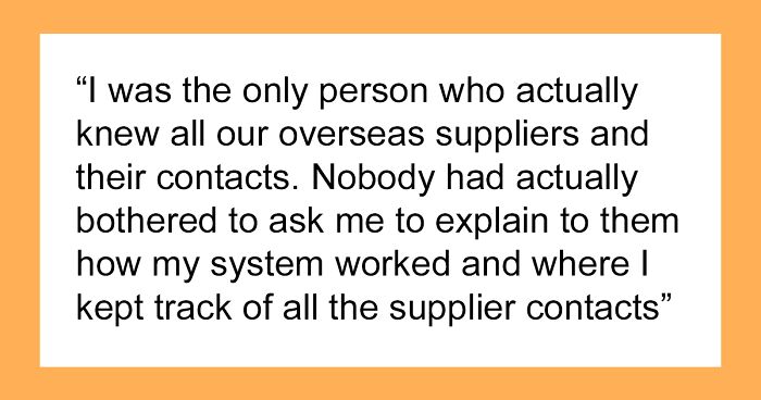 Refusing to instruct people at the former workplace wasn’t done out of spite, though. “It felt a little weird towards the new company, if I’m being honest. I only just started working for them and now wanted to leave for a week to instruct the people at my old job? Didn’t come off right in my head. It wasn’t really done out of a lust for revenge,” the redditor told Bored Panda.