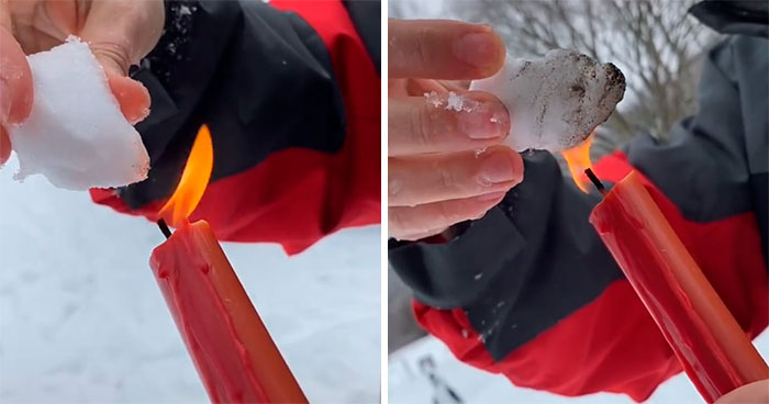 While blaming President Joe Biden for creating fake snow, people are posting videos online showing that the snow does not melt while being burned, instead only leaving black marks and an unpleasant odor. Numerous videos show people holding up candles, lighters, or other implements to snowballs they have just made, explaining that there is no water dripping to be seen and it only turns black.