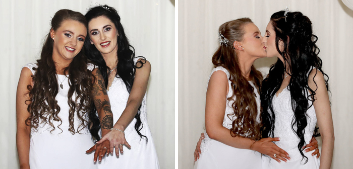 Originally, the couple had been planning a civil partnership on the same date, but after the law was changed in Northern Ireland, the two knew that they wanted marriage. Consequently, when Sharni and Robyn went to the registrar’s office in Carrickfergus town to register their big day, they were told that they were the first to sign up for a civil marriage.