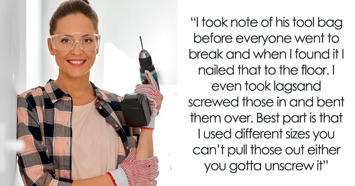 Lazy Guy Thinks He Can Steal Coworker’s Ladder, She Takes Revenge By Nailing His Tools To The Floor