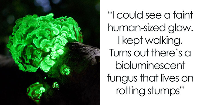 I was camping with a group of army cadets in a remote area, no facilities. Middle of the night I had to get up to relieve myself and walked into the bush a ways. I could see a faint human-sized glow in front of me and thought WTH? I kept walking gingerly and discovered a rotting stump. Turns out there’s a bioluminescent fungus that lives on rotting stumps.