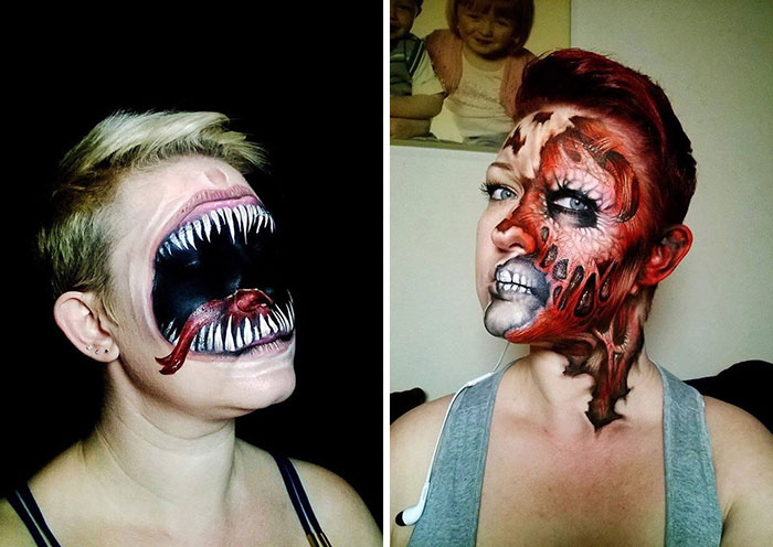 Nikki Shelley has reached an impressive following on Facebook thanks to her makeup skills. The mother-of-three uses face paints to create a kind of different monsters and terrifying faces.