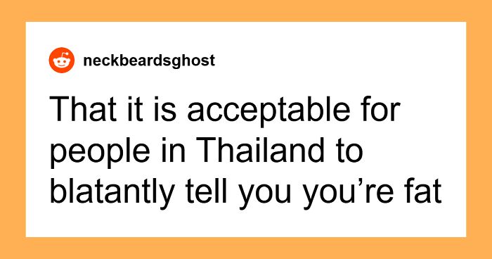 That it is acceptable it is for people in Thailand (and other surrounding countries) to blatantly tell you you’re fat lol. It’s not taboo there to point out the obvious, so the first time it happened to me, I was shocked and embarrassed. But after living there for almost a year, I realized it’s perfectly acceptable in their culture to say things like this!