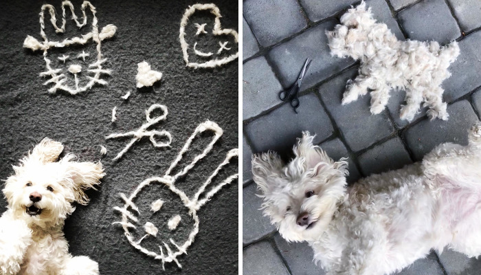 My dog Leo is a 3-year-old Cockapoo and he loves to be groomed. Earlier this year his fur was so long that when I finished his cut I thought there was enough hair to make a mini Leo out of it and so I did.