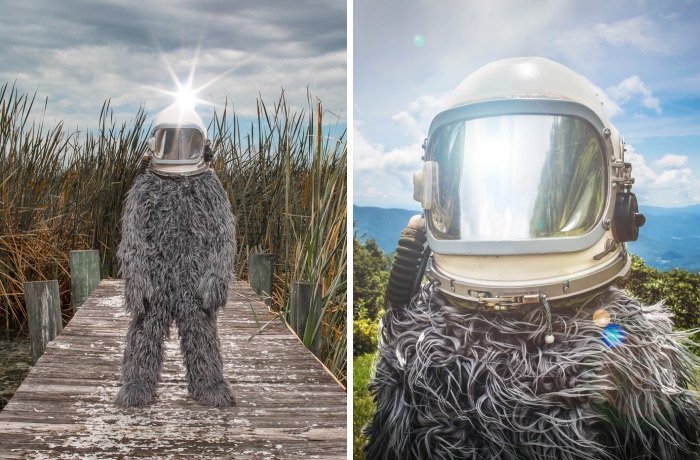 I dreamt up this summer road trip project my kid and I could work on together. The suit is custom made and features a vintage Russian space helmet. We’ve been all over the country and have our sights set on Iceland for next summer…