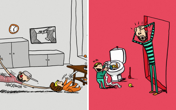 When I was home with my son, I just had to draw all the weird/fun situations. To vent and to remember. (You know, you get tired when in paternity leave… So I had to document all the fun stuff.)
