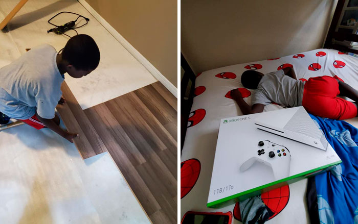 One of the ways he makes sure his kids are ready to be self-sufficient and successful adults is to teach them a variety of useful skills. The father never misses an opportunity to do so. When his 11-year-old Markell asked for a new Xbox after his old one broke down, his dad knew exactly what to do before buying him the console. The man asked his son to help to put down the flooring on one of his rental properties and after a long day of work, the boy got what he asked for.