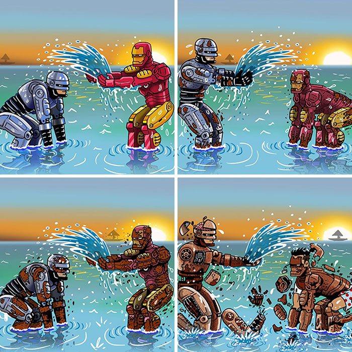 Thanks to Brazilian artist Lucas Nascimento, known for his series Dragonarte, we can see reimagined scenarios of famous movie characters in their off-duty moments. This isn’t the first time we’ve shared works by this talented cartoonist, so make sure to check out our previous posts featuring his earlier creations. For now, scroll down and enjoy the latest adventures of superheroes’ everyday lives illustrated by Dragonarte.