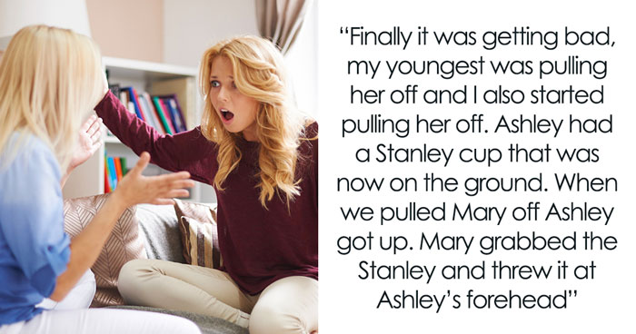 In pure rage, she lunged at her sister, grabbing her hair and beating her up. She finally hurled a Stanley cup at her head, and the sister fell to the ground, dazed but conscious. A doctor’s visit later confirmed she had a concussion, and while the OP was shocked at what happened, she couldn’t help but feel like her first daughter deserved the beating she got.