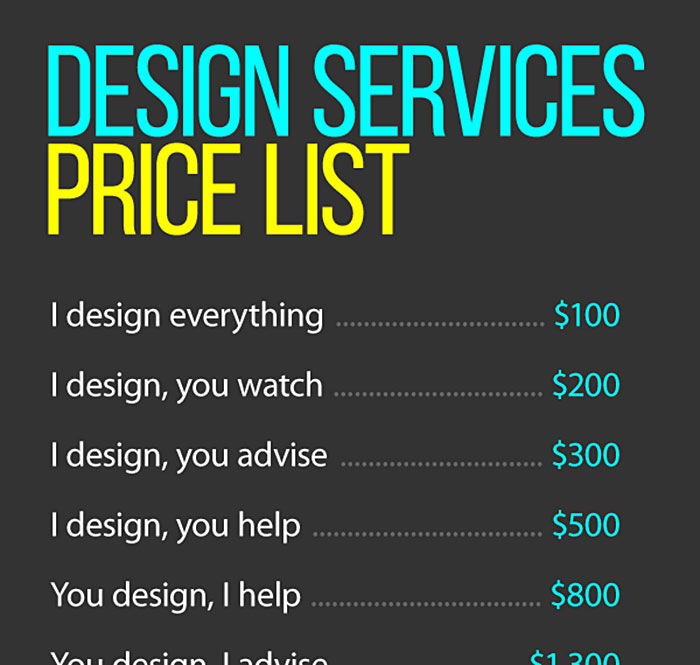 “Please just let me do my job” is a phrase that is often considered but rarely spoken in any profession that deals with clients. This humorous price-list reflects numerically what every graphic designer thinks when a client “wants to help” with a project. Do you agree?  (h/t: demilked, digitalsynopsis)