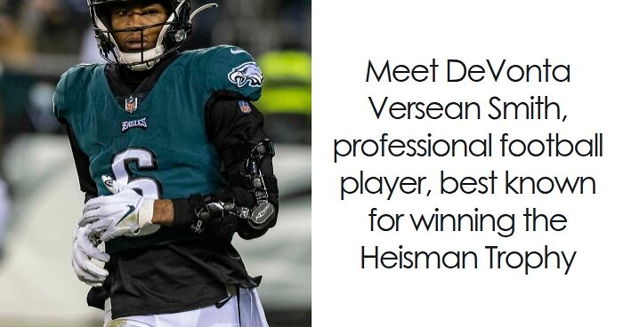 DeVonta Versean Smith is an American wide receiver known for his precise route-running and quiet determination on the football field. His disciplined approach and exceptional hands have made him a standout player in the NFL.