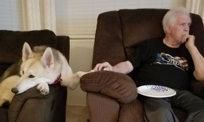 My grandpa’s dog had passed a few years back and he swore he wouldn’t ever get or love another dog again. Long story short…. Delilah is now the love of his life, and they hold hands.