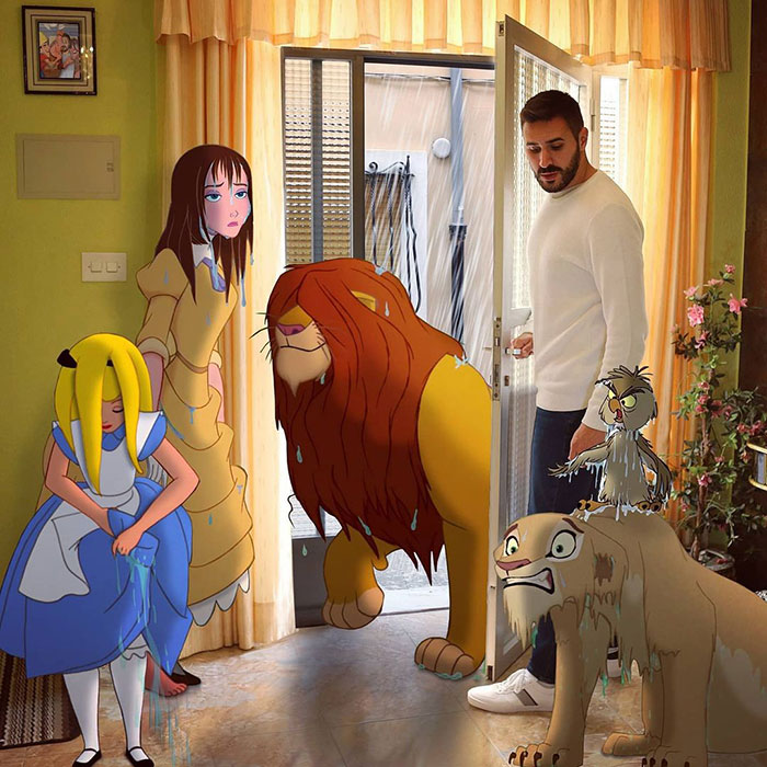 Many of us as children or maybe even as adults imagined what it would be like if we joined our favorite fictional characters on their adventures on the other side of the screen or if they jumped out of it and infiltrated our everyday life. Given that this would be impossible in reality, Samuel MB applied tools that are available to experiment with this idea. This artist, actor, and primary school teacher invites iconic Disney characters into his life using Photoshop and it looks as if they are actually interacting in relatable and whimsical situations.