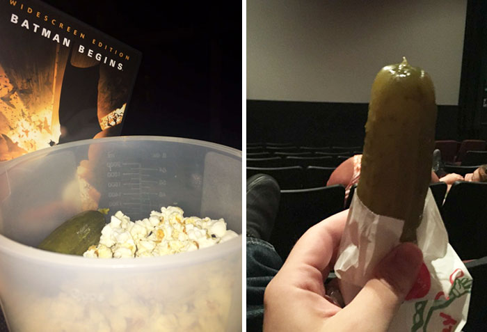 Pretty much every person who likes to visit movie theatres enjoys the smell and taste of fresh, delicious popcorn coming from a concession stand. And while some people find the sound of someone eating popcorn during a movie a bit annoying, it’s probably nothing compared to the smell and the sound of someone crunching on a dill pickle next to you. Yes, you’ve read that, right! There are some movie theatres in Texas and Pittsburgh, where you can buy pickled cucumbers to binge on while you’re enjoying a movie. And while this movie snack seems a bit strange and unusual for most of us, Texans are surprised that eating pickled gherkins in movie theatres is not a thing everywhere. Seriously, they love pickles! Well, at least it’s a healthy snack and not some abomination in the lines of deep-fried butter. Don’t believe us? Scroll below to see these unique snacks in full color yourself!