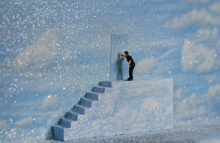 Somehow I’ve ended up making dioramas—miniature worlds in boxes—for a living. Over the last 17 years, I have made (and sold) several thousand. The scale is a classic model railway—1:87, so figures are less than an inch high.