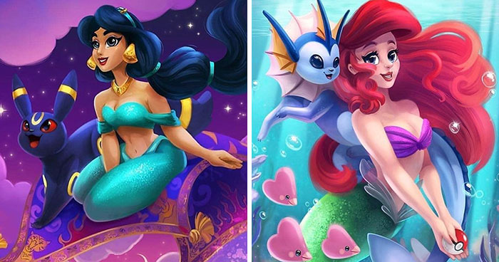 But what if suddenly princesses switched their iconic companions for something that is outside of their corresponding fictitious realities? With that idea in mind, Eric Proctor, better known as TsaoShin on social media channels, created a new art series where he imagined nine of the Disney princesses forming friendships with… different kinds of Eevee evolutions!