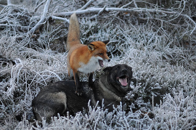 Meet Tinni the dog and Sniffer the wild fox. They met in a Norwegian forest