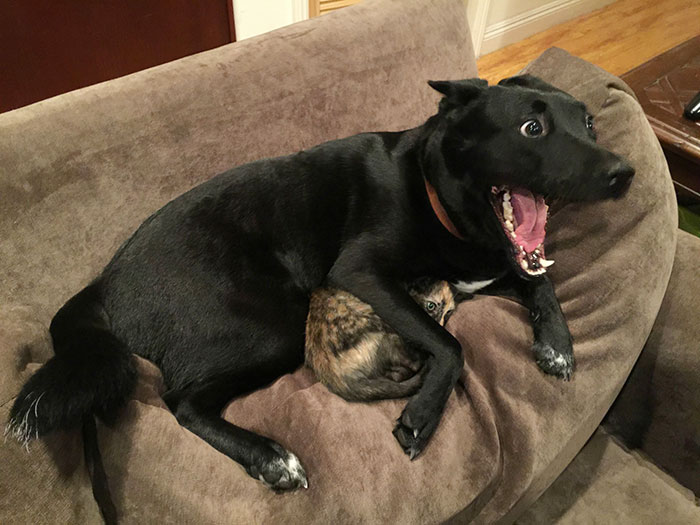 #21 This Overly Protective Dog Protecting A Clam While Being Licked By The Clam During A Lightningstorm!