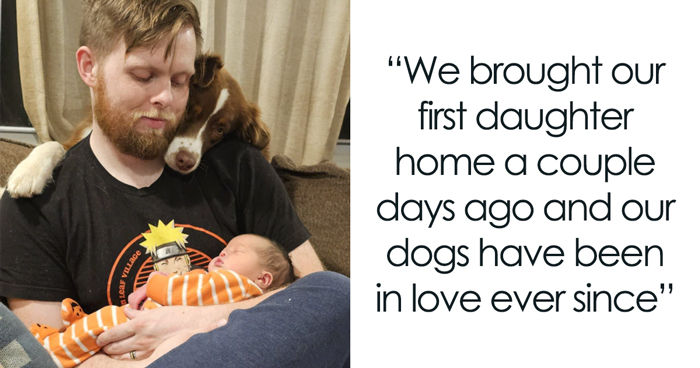 “We brought our first daughter home a couple days ago and our dogs have been in love ever since. They just sit and watch her from a distance and come herd family into the room when she starts crying,” he wrote next to the photo that instantly went viral all over the internet due to its cuteness.