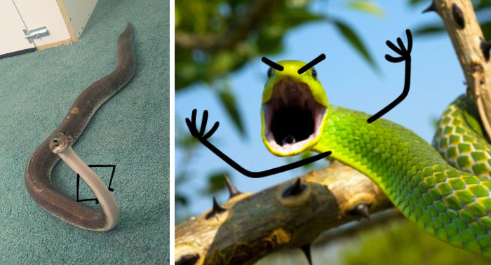 Some time ago a wise person decided to doodle hands on a cute pic of a snake he found. The result was so satisfying, he shared it on the internet. And then the doodle war began.