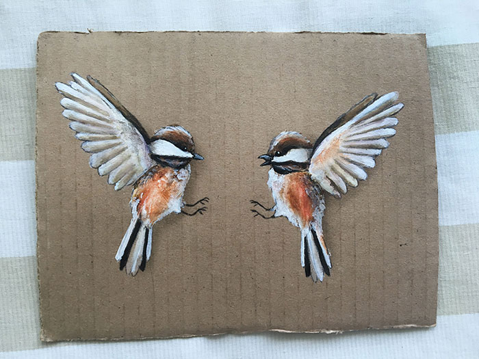 If you’re struggling to draw reflections, this is an easy way to get them right. Take a piece of blank paper and fold it in half. Place this over a piece of carbon copy paper and draw your image onto the blank page. It’s best to use a pencil or pen with a sharper, harder point. Once you’re done with your drawing, open up the page and you’ll have a perfect reflection of the image. Use old boxes, papers or anything for painting.