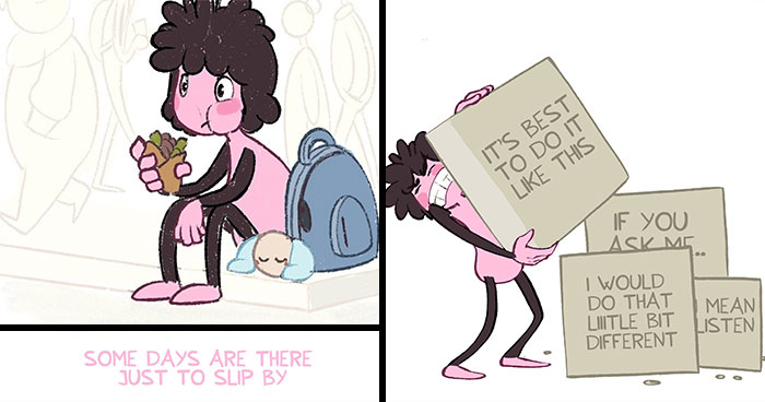 I was tired of time passing too fast and decided to stop one year in time with my drawings. My drawings are really personal and resonate with my internal state, struggles, fears, and joys.