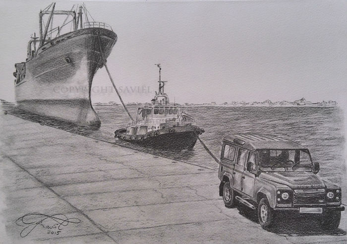 Drawing Land-Rovers was never my intention. I am a Nautical Artist, I draw ships for a living. But it turns out that Land-Rover has a lot in common with the nautical side of life. They to are able to go into the water, they can go anywhere, no road to hard, or steep, or washed away by water. My interest was awoken and here I am drawing these versatile vehicles that never seem to bore me.