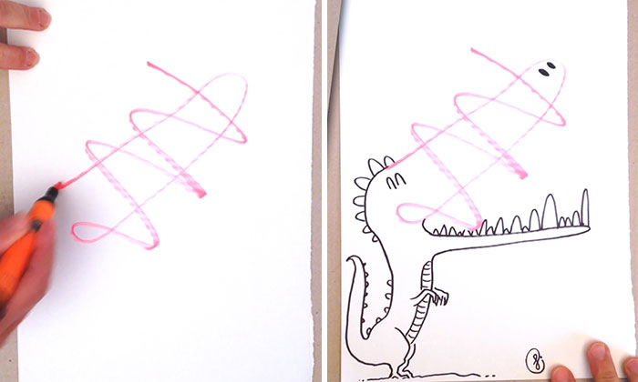 So, here it is, my project called SCARADOODLES: in every episode I find a different character, usually an animal, starting from a doodle made by a guest (“doodle” is “scarabocchio” in Italian). I upload these on my Youtube channel almost every day.