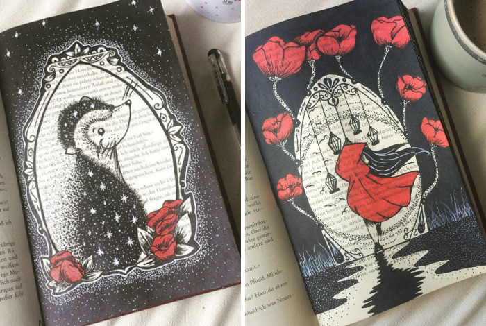 Having a thing for aged and vintage things I got out my fineliners and started doodling on the pages. Turns out I really enjoyed the way words and art merged together creating something new entirely.