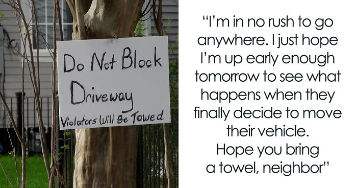 The author of the post once saw the neighbor’s car blocking their driveway and got indignant