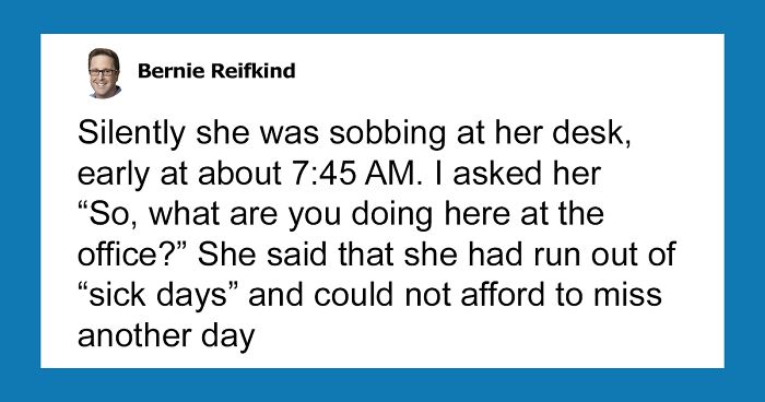 Companies often take their employees for granted. Withholding raises and promotions, piling up extra work and eliminating fringe benefits, they certainly know how to take advantage of their workers. But it doesn’t have to be like this. And this story by Bernie Reifkind proves it. Recently, he told his LinkedIn connections about the time he stumbled upon a mom employee, crying at her desk. She’d been up all night, was out of sick days, and her child was ill. However, instead of telling her to suck it up, Bernie did something that modern managers are forgetting about. It’s called being a decent human being and showing empathy.