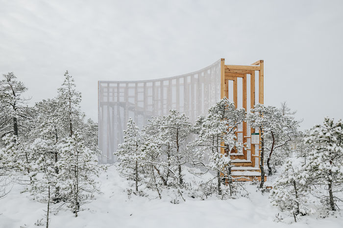 Estonian Academy of Arts interior architecture students have been designing hiking/forest infrastructure – shelters and observation towers for the nature trails in Estonia for the last few years. All pics here: Tõnu Tunnel.