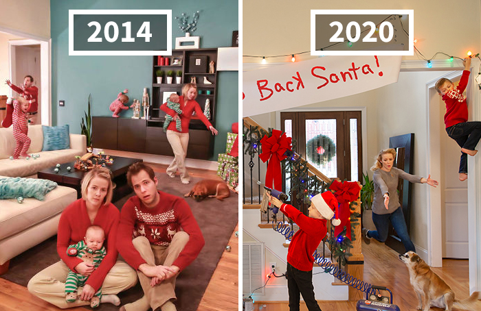 Bored Panda reached out to the creative dad Jonathan Stanley who has been doing these real-life Christmas cards with his family every year since 2014. Jonathan previously told us that the idea came when the traditional photo didn’t go according to plan.