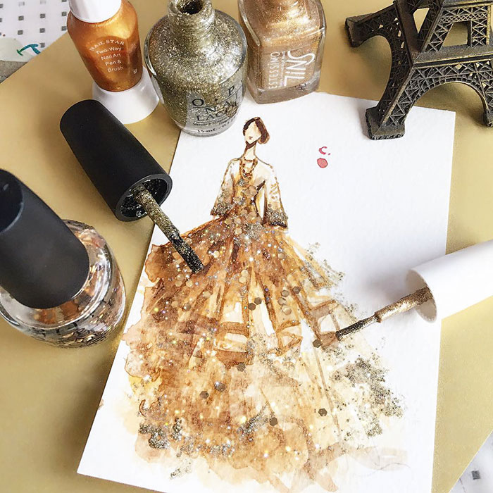 Hi everyone! My name is Chan Clayrene, I am a visual artist based in Singapore. Currently, I am living my dream on Instagram through illustrating my favorite haute couture and dream gown with the use of my tiny bottles of nail polish!