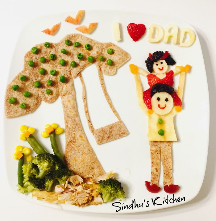My love for food art began when my little one told no to “Broccoli”….the question how to make her mealtime fun time, made me start with small food arts and now food art has become my passion! Presenting some simple food arts for this Father’s Day!