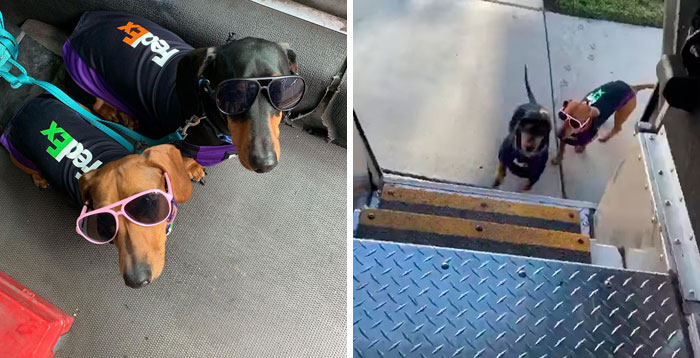 These two adorable dachshunds, Chorizo and Cocoa, have become the cutest FedEx employees ever