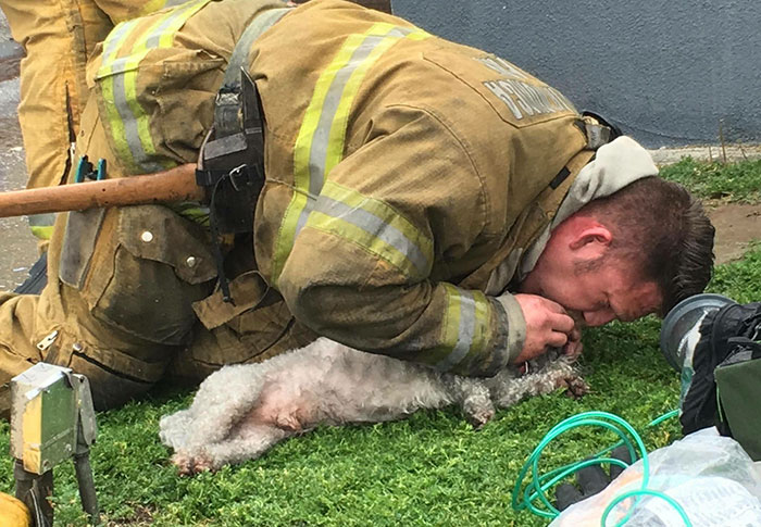 “Just a minute after, [the firefighter] began performing CPR on the pet without any hesitation”