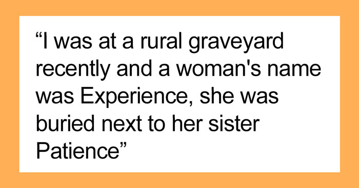 I was at a rural graveyard recently and a woman’s name was Experience, she was buried next to her sister Patience.