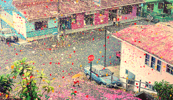 A glorious eruption of vibrantly-colored flower petals – 8 million of them – has flooded through a small village in Costa Rica. The surreal and beautiful sight is part of SONY’s advertisement campaign for their new 4K Ultra HD line of TV sets.