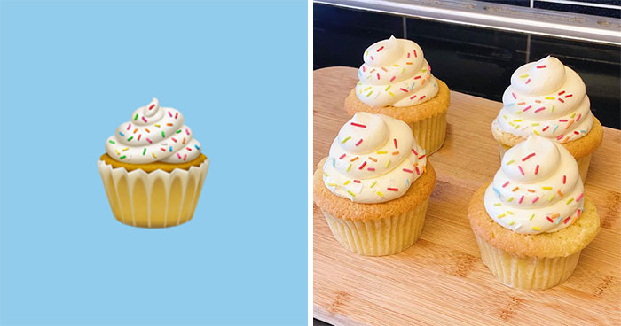 Granted, the emojis vary depending on the operating system, platform, and even phone model, but largely, they are easily recognizable—a birthday cake is just as enticing, and a cup of digital coffee might smell of freshness to come. Such is their true intention, to convey the feeling without going into elaborate details. But what happens when you take something that was transferred from the real world to digital space… and then turn it around again? Well, this TikTok user wasn’t afraid of a challenge.